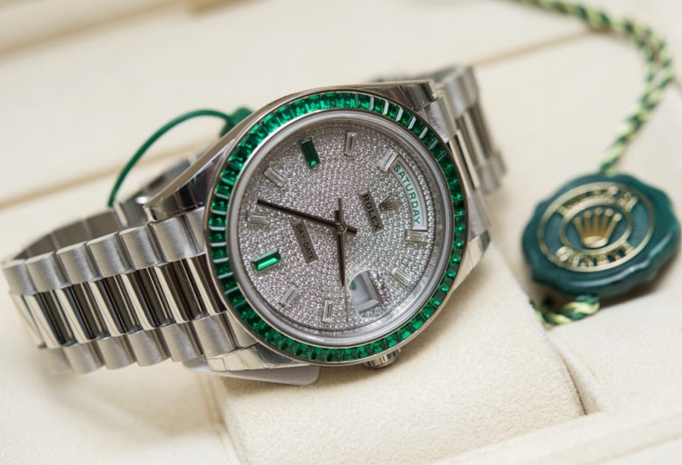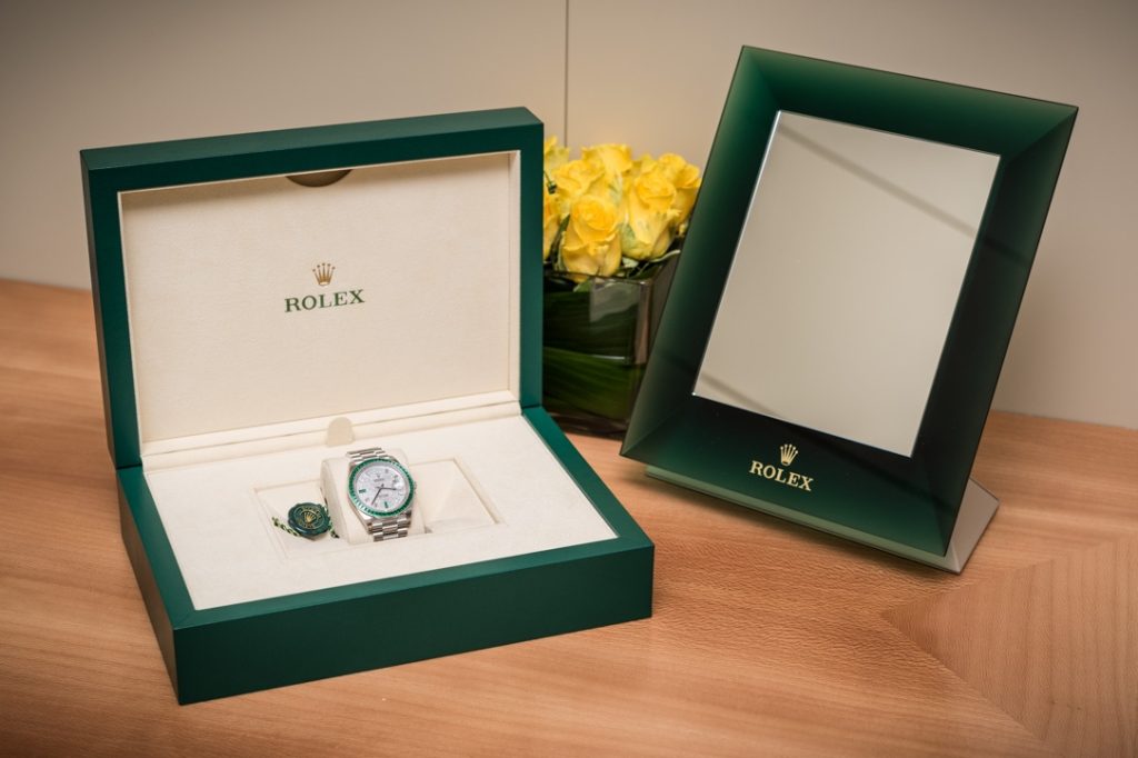 To this day, Rolex still makes some extremely rare watches. And when you encounter one, things start as unassumingly as a green box, hardly at all different from the one most of their replica watches UK come in, with a Rolex crown at “6 o’clock.” You might agree that this is the typical presentation of a watch built The Rolex Way. What we are looking at today, however, is not your well-known Rolex, but one so rare it is not even listed on the official website or any catalogue. It is extremely hard to come by, mind-bendingly expensive, impeccably made, and shall remain aspirational even for the majority of “one-percenters.” This is the all-factory, solid-platinum Rolex Day-Date 40 Green Emerald Reference 228396TEM, priced very close to the half-a-million-dollar mark. This model is based on the updated Rolex “President” (Day-Date) watch family that debuted in 2015.